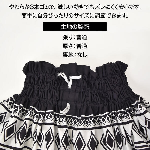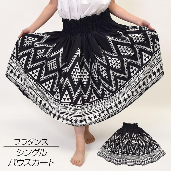 フラダンス衣装 シングルパウスカート ダンス 衣装 フラ シングル JQT10370 レディース 綿混 スカート ブラック/黒 65cm丈-70cm丈-75cm丈